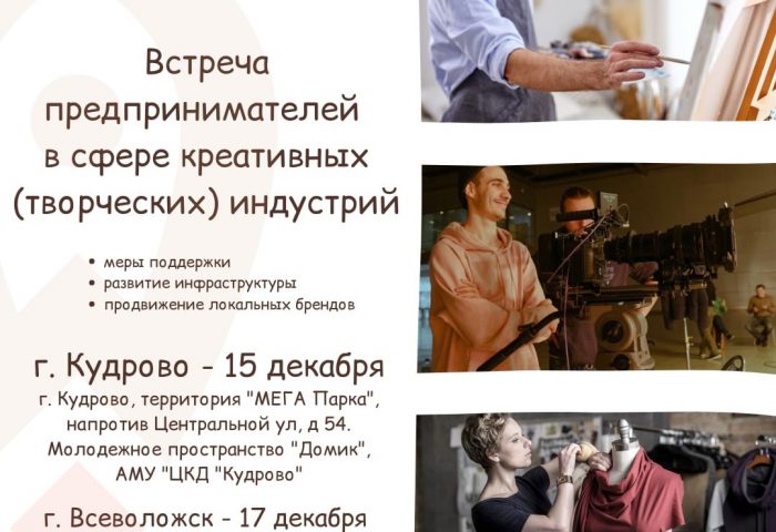 Комитет по развитию малого, среднего бизнеса и потребительского рынка Ленинградской области организует встречу для руководителей и владельцев компаний из сферы креативных индустрий в Кудрово
