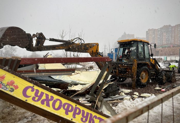 Сегодня в Кудрово администрация демонтировала торговый павильон на Ленинградской