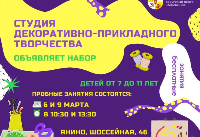 Муниципальный культурно-досуговый центр объявляет набор в студию декоративно-прикладного творчества
