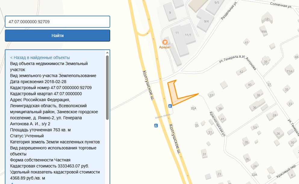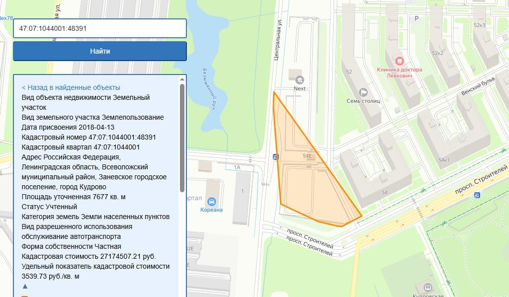 Эти земли ничем не застроены. Одна площадка в Кудрово занята автопарковкой открытого типа и частично накладывается на улично-дорожную сеть молодого города, в том числе действующий пешеходный переход. Похожая ситуация и с одним из участков в Янино-2 – он тоже имеет наложение на существующую улично-дорожную сеть.