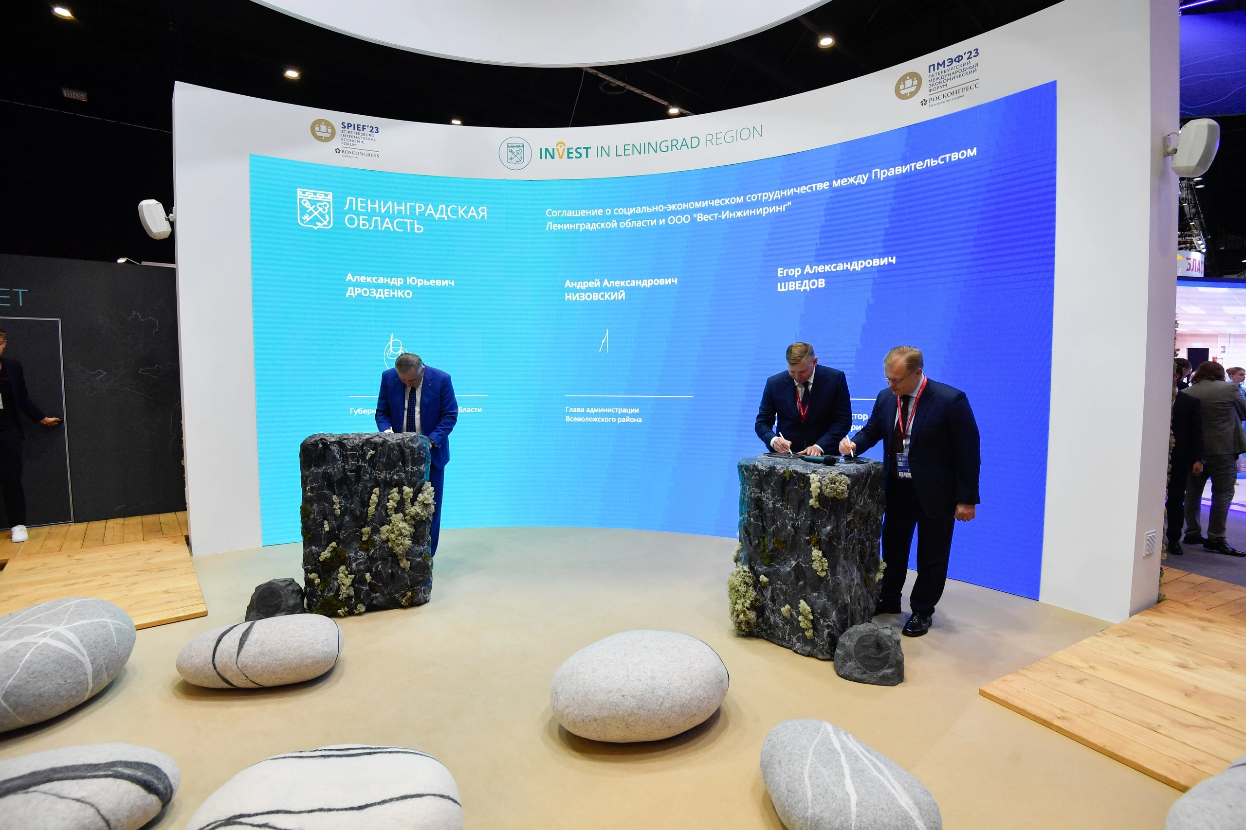 Соответствующее соглашение подписали губернатор Ленинградской области Александр Дрозденко и генеральный директор ООО «Вест-Инжиниринг» Егор Шведов в рамках Петербургского международного экономического форума. Объем инвестиций составит 3 млрд рублей.