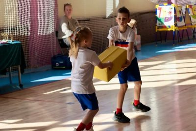 Состязания проходили в пяти эстафетах. Участники прыгали на фитболах, собирали пазлы, строили домики из кубиков, разгружали игрушечный грузовик и проходили многоступенчатую полосу препятствий.