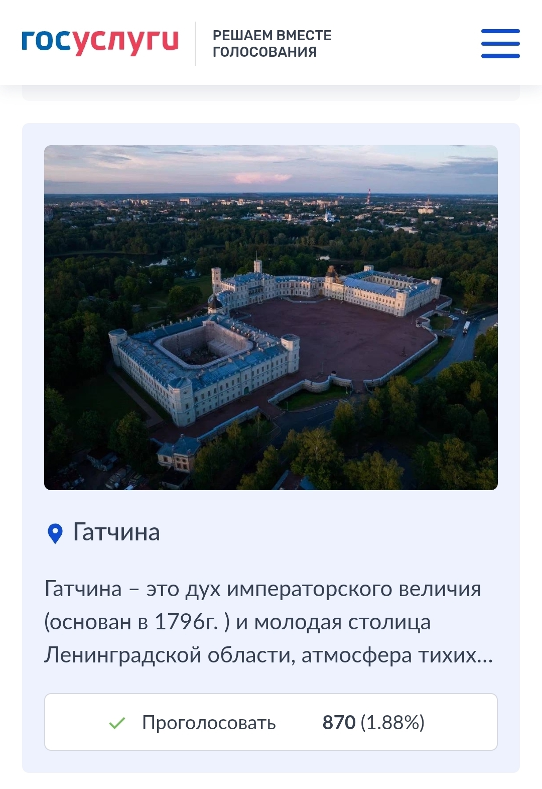 Голосуем за Гатчину прямо сейчас!