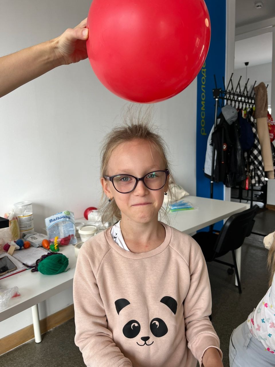 Ребята вместе с руководителем детского центра «Гагоша» Натальей Басиной наглядно изучали статическое электричество и законы Ньютона, мастерили игрушки-антистресс и, конечно же, лопали шары.