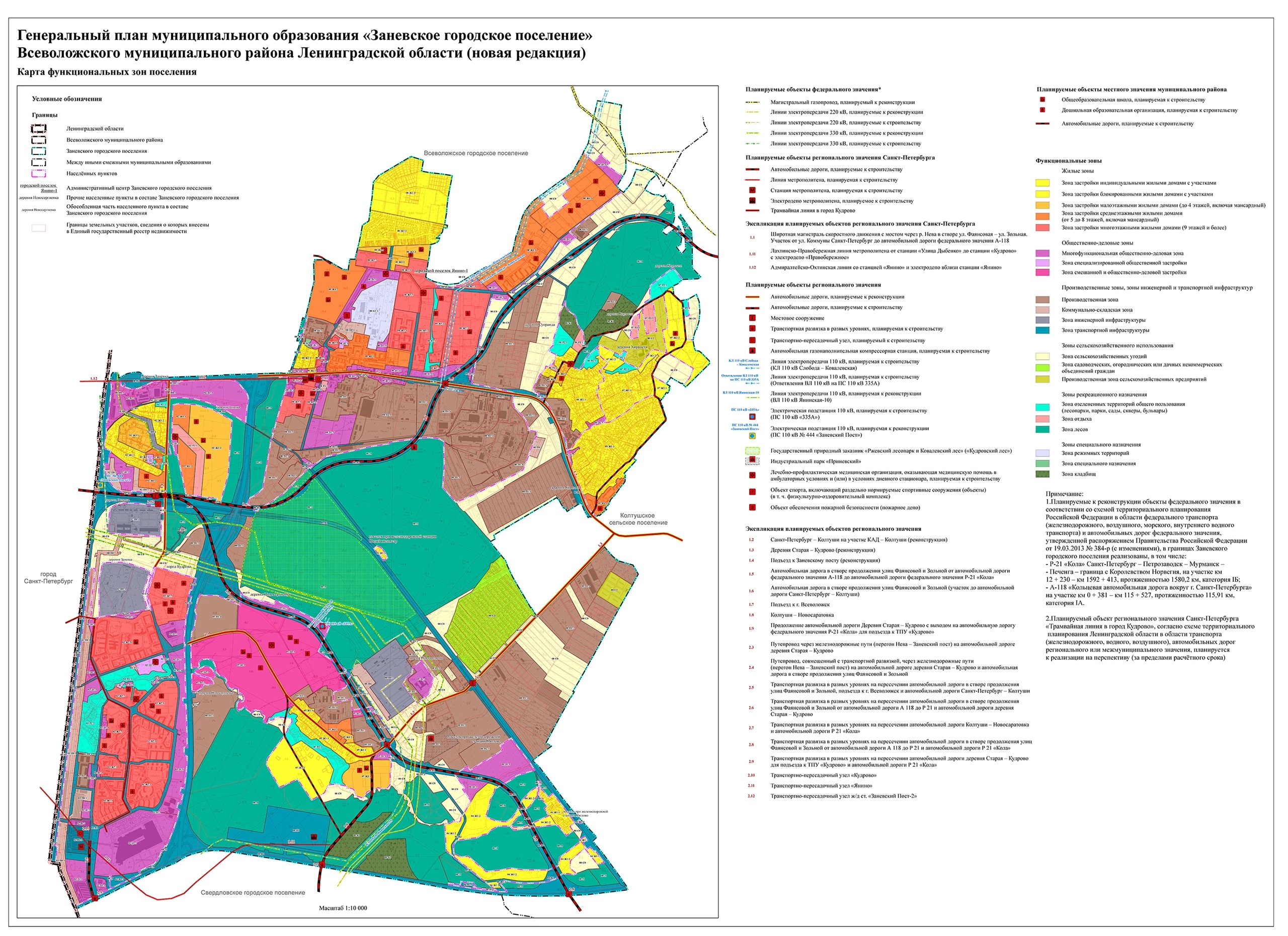 Особое внимание уделено транспортной доступности. Учтена реконструкция автомобильной дороги Петербург — Колтуши, строительство подъезда к Всеволожску и широтной магистрали от КАД до трассы «Кола», что обеспечит новые выезды из населенных пунктов. В Кудрово и Янино-1 должны появиться две станции метро. Запланированы и положенные к ним электродепо и транспортно-пересадочные узлы на базе конечных станций.