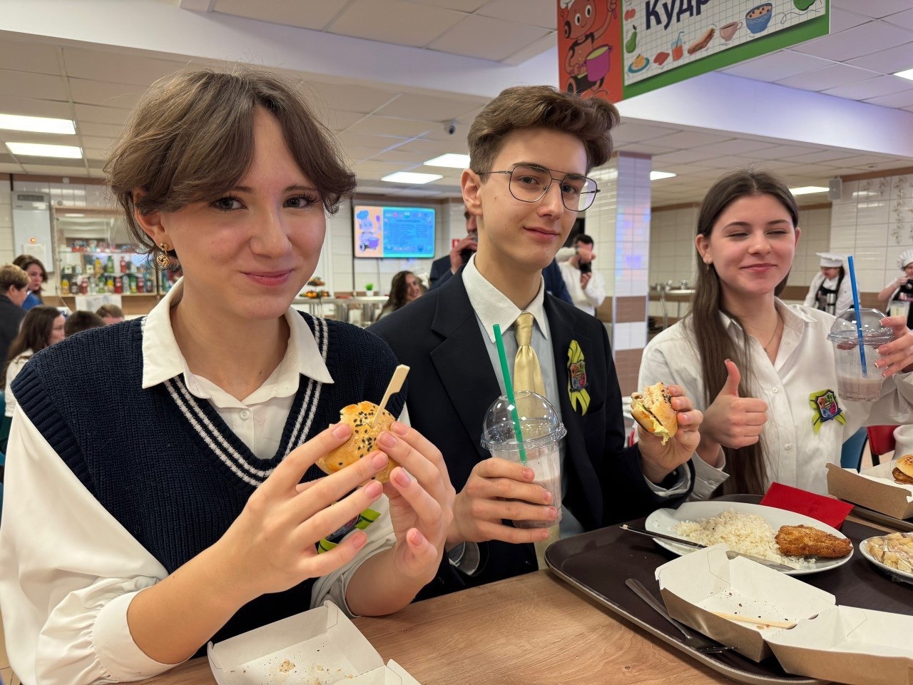 В переформатированном пространстве есть всё, к чему подростки привыкли в популярных точках общепита: приятная музыка, сенсорный терминал самообслуживания, чтобы избежать очередей, и, конечно, бесплатный Wi-Fi. Ждать свой заказ можно как за обычным столиком, так и за барной стойкой. Но главное – повара «прокачали» стандартное меню: теперь в нем не только традиционные супы и котлеты, но и любимые подрастающим поколением чизбургеры, паста, запеченная в фольге картошка с сытной начинкой, смузи и молочные коктейли. Разумеется, все это должно быть не только вкусным, но и полезным.