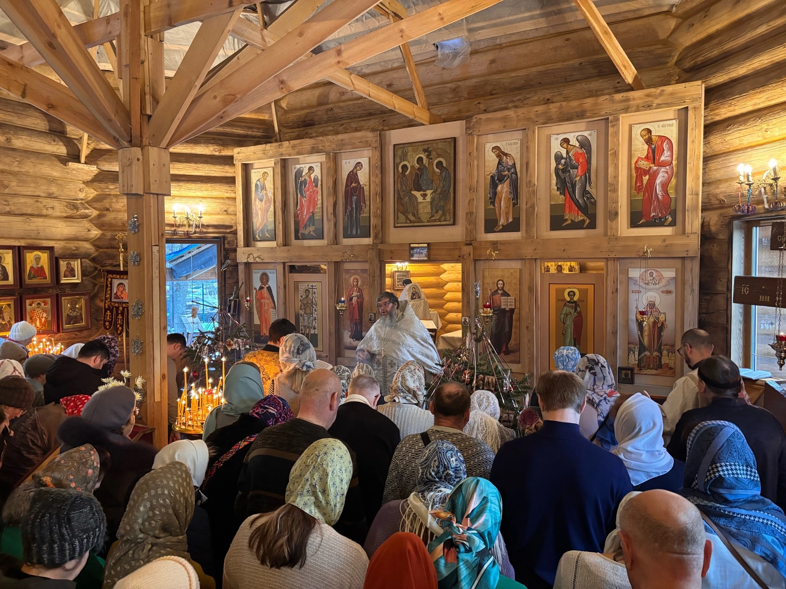 Аромат ладана окутывал всё пространство, а мелодичные песнопения церковного хора создавали атмосферу умиротворения. Верующие наполнили храм своими искренними молитвами.