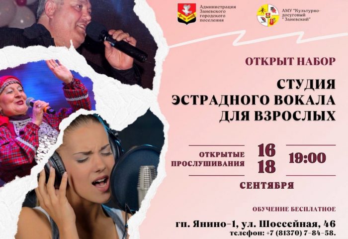 Друзья, напоминаем, уже завтра первое прослушивание в студию эстрадного вокала! Только 18+