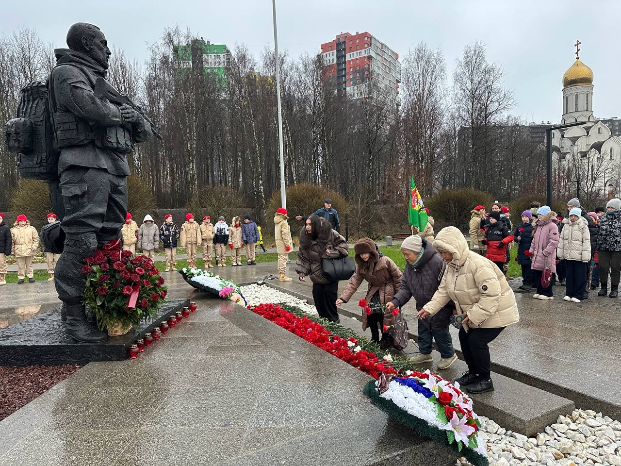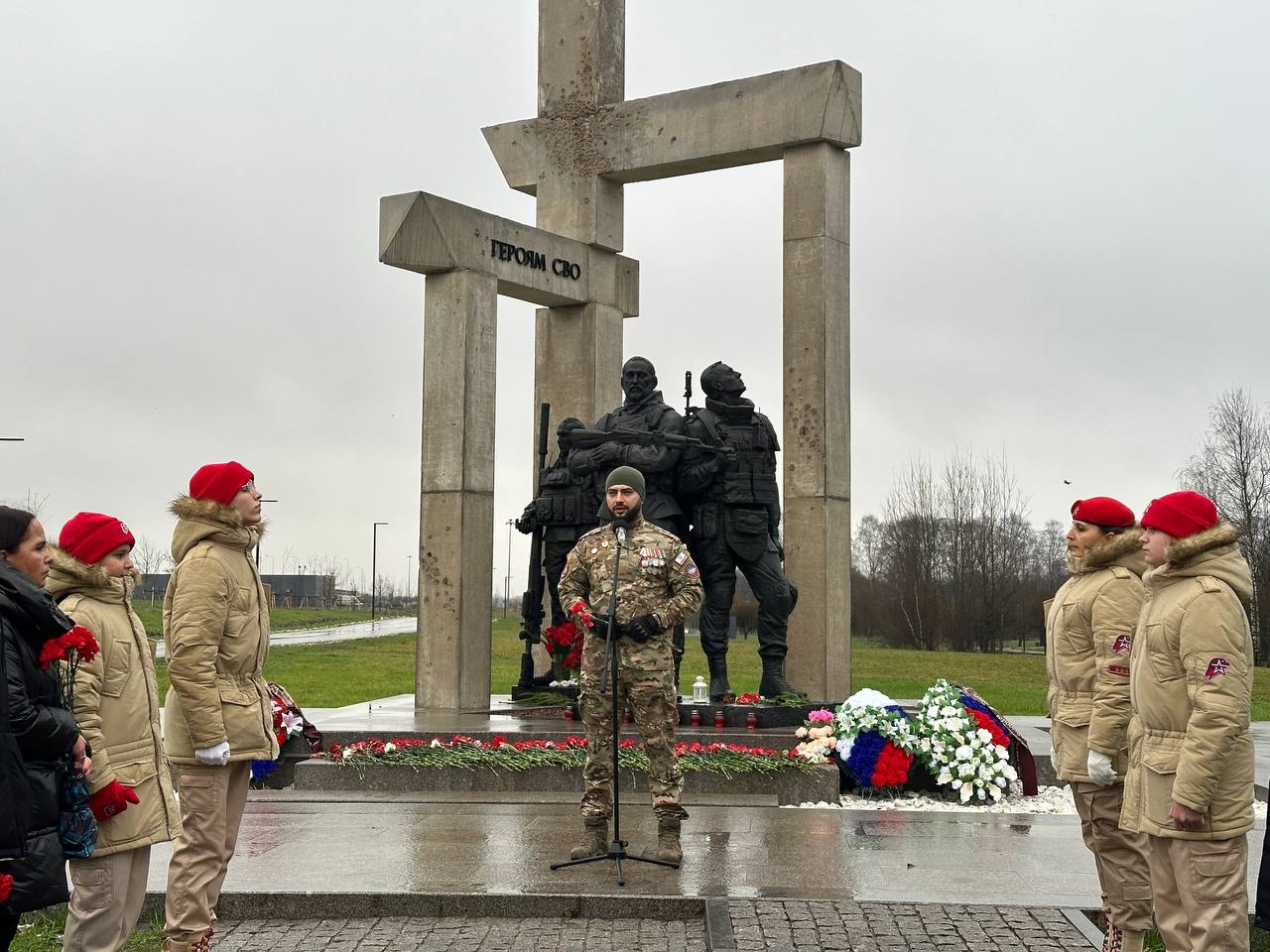 Сегодня основные торжественные мероприятия развернулись в парке «Оккервиль», у бронзовой скульптуры, посвященной бойцам, отдавшим жизнь в зоне специальной военной операции. Несмотря на непогоду, возле «Трех богатырей» собралось немало горожан. В церемонии приняли участие ветеран СВО Артем Камалетдинов, представители администрации и депутаты муниципалитета, юнармейцы, иерей кудровского храма Ярослав Арзамасов и все, кому небезразлична национальная идея служения Отечеству, сохранение исторической правды и консолидация общества. После минуты молчания присутствующие возложили к памятнику венки и красные гвоздики – символ пролитой крови и доблести наших солдат.