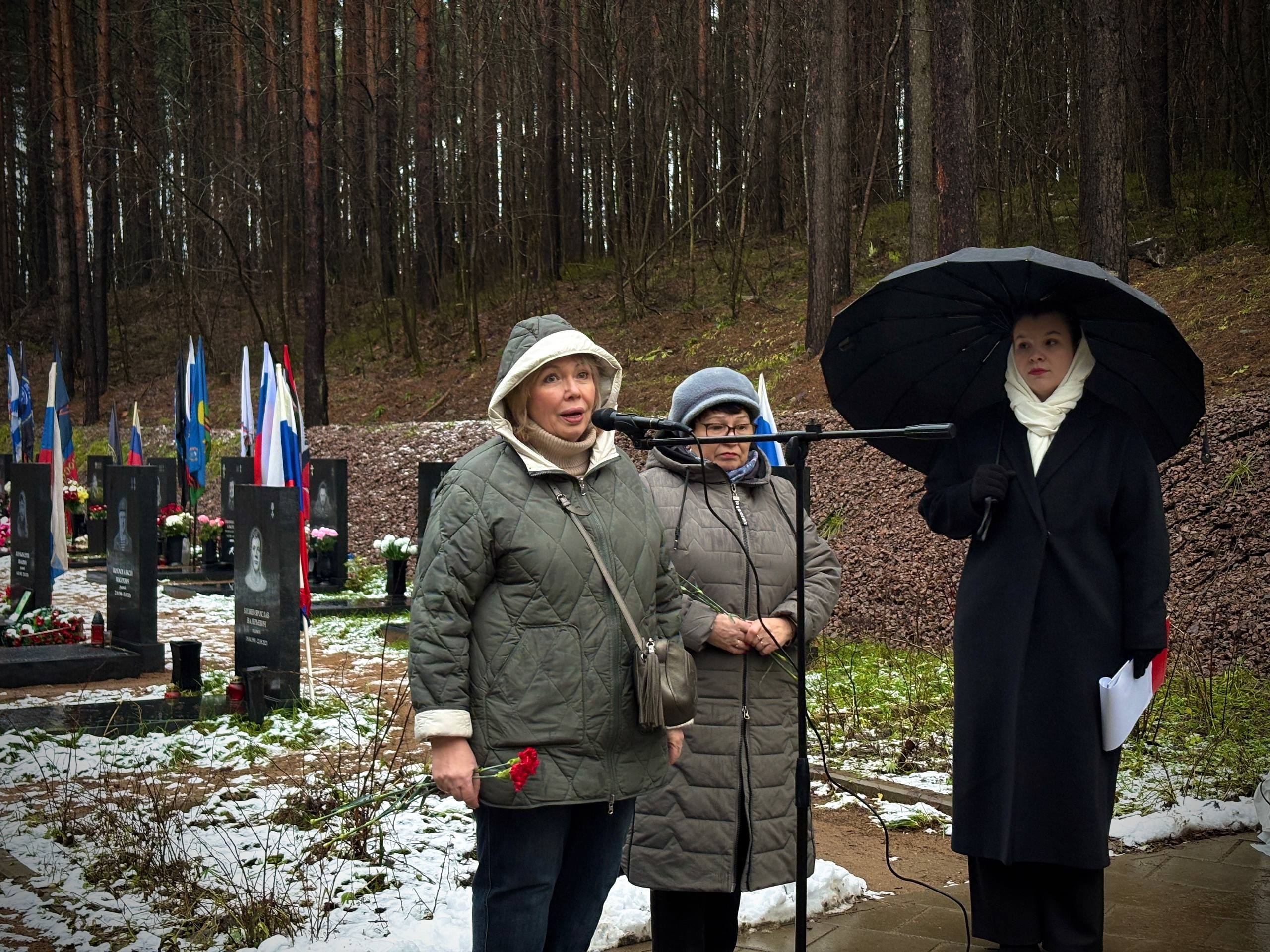 Траурный митинг состоялся и в Суоранде, на Пундоловском кладбище, где нашли упокоение 32 участника СВО – год назад здесь появился мемориал, который стал архитектурным и идейным продолжением братского захоронения советских воинов, участвовавших в освобождении Ленинграда в годы ВОВ. Гвоздики к обелиску принесла и труженица тыла Валентина Езжеленок, которая до сих пор помнит бомбежки, голод и разруху сороковых.