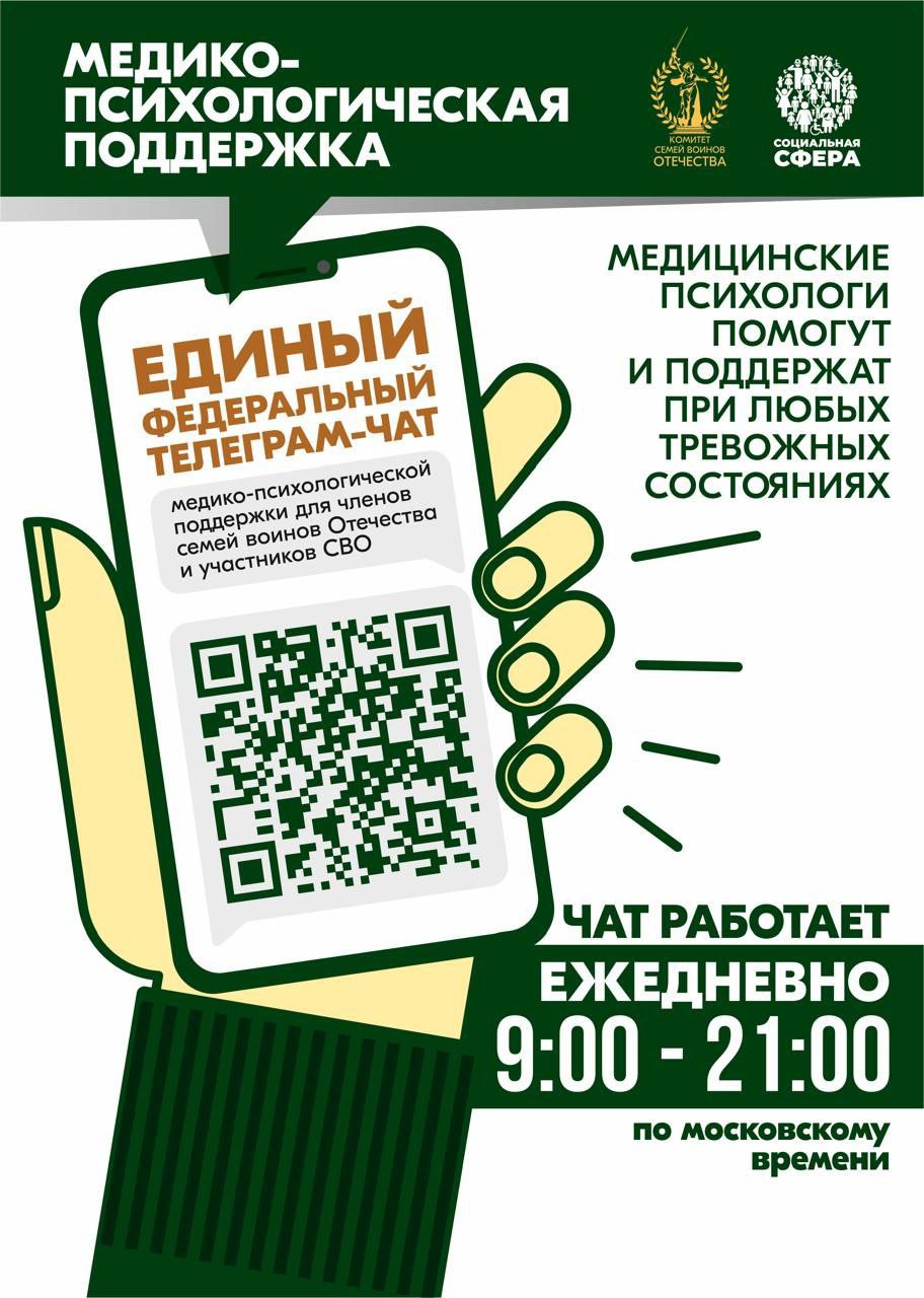 Для участников СВО и их близких работает единый федеральный чат медико-психологической поддержки https://t.me/+-NlCAoiZghk2OTNi