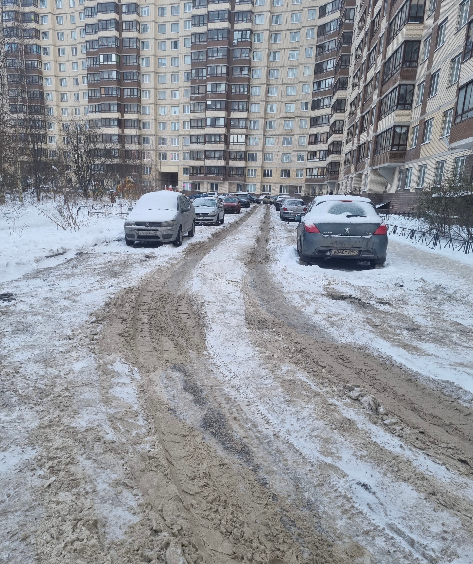 Также в некоторых ЖК оказались не обработаны тротуары противогололёдными средствами, где-то отсутствовала уборка проезжей части или тротуаров. Среди наиболее проблемных территорий — дворы по пр. Европейскому, д. 20, со всеми корпусами, по ул. Пражской, д. 14, по ул. Столичной, д. 4, со всеми корпусами и по пр. Строителей, д. 20, со всеми корпусами. В жилом комплексе «Весна-2», что находится в Итальянском пер., д. 4, из-за некачественной уборки образовалась колейность.