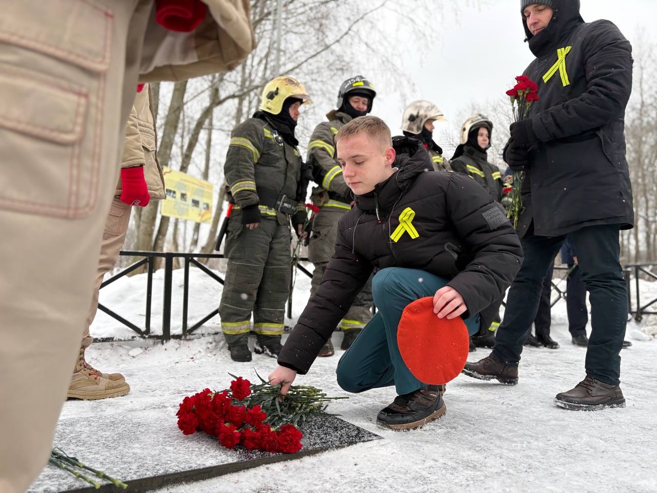 На Пундоловском кладбище, где находится одно из крупнейших в регионе захоронений времён ВОВ, с оливковыми ленточками на лацканах собрались ветераны, представители администрации и совета депутатов, общественники, школьники Янинского ЦО и огнеборцы Леноблпожспаса.
